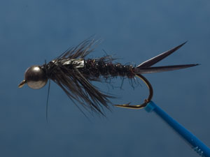 . It is effective anytime large stone nymphs are active. This nymph is also very good for large trout. Tied on a Daiichi 1730 bent long shank heavy wire nymph hook.