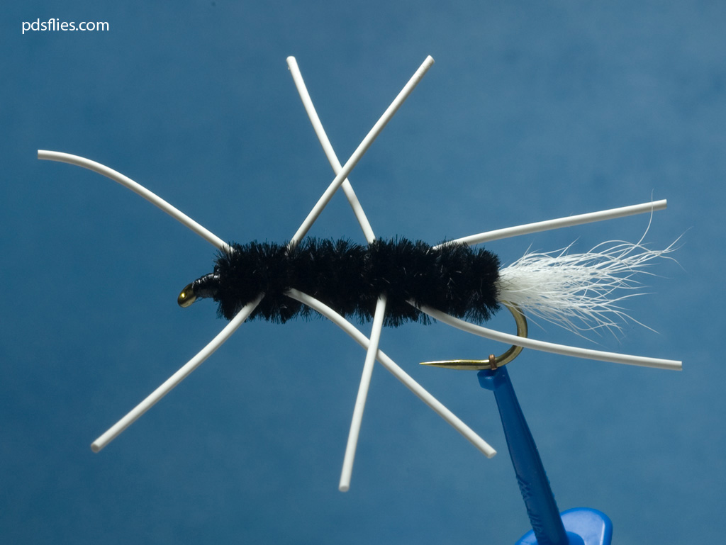 The Wet Skunk, a.k.a. the Michigan Wet Skunk, or Au Sable Wet Skunk, was designed by Earl Madsen of Grayling, Michigan. This fly produces extremely well on trout, smallmouth bass and panfish. Many anglers recommend fishing the Wet Skunk on overcast days. It is also a great fly to use as a trailer behind a large streamer. The Wet Skunk was one of the first patterns to utilize rubber strips as legging material. Also see its dry-fly brother; the Dry Skunk. Tied on a Daiichi 1720 barbed, or a Tiemco 5263BL barbless, chemically sharpened 3x long hook.